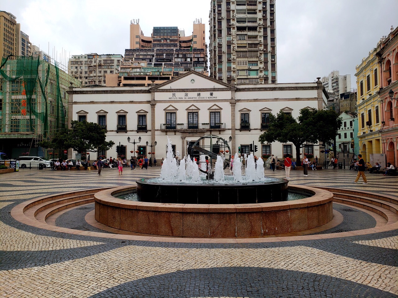 議事亭前地南闊北窄,呈狹長的三角形,為熱鬧商業及文化活動區;九十年代初,澳葡政府請葡萄牙技師以黑白相間之葡國石鋪砌前地及相連街道地面,使之成為帶葡萄牙城市風格行人專用區。