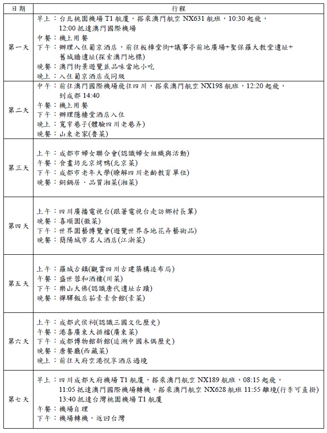 參訪天數:七天六夜